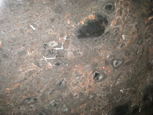 | Description: Clusters of red-brown running in veins across deep black. |