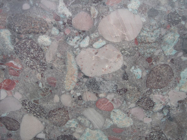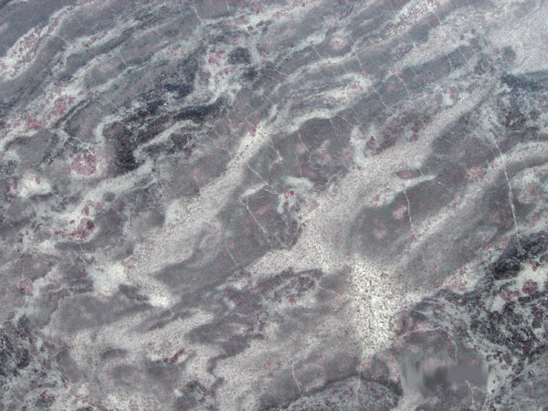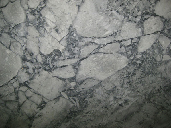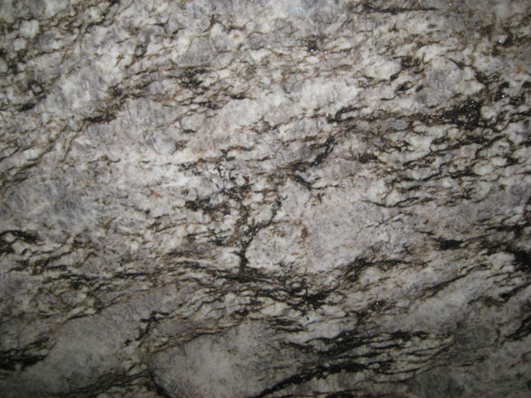 | Description: Veins of black and taupe with clusters of cream on grey. |