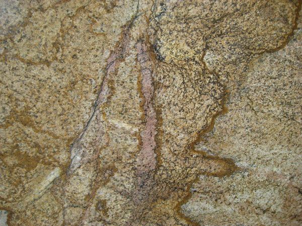 | Description: Medium grained stone with specks and veins of blackish grey and beige. |