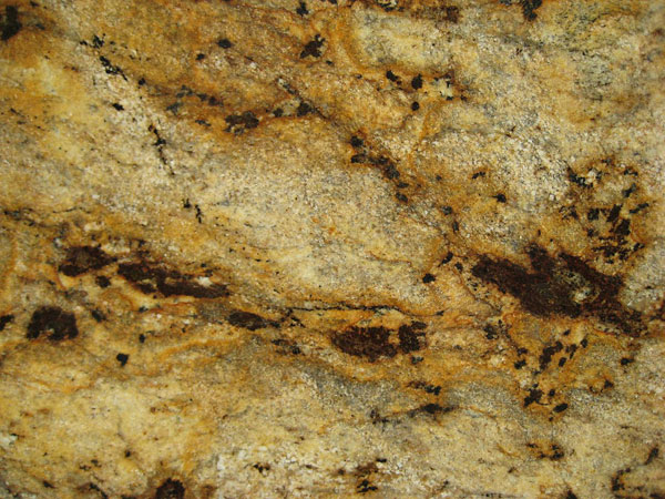 | Description: Bold splashes of golden quartz and black speckles on creamy gold. |